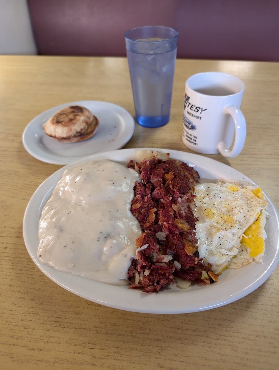 A delightful "small-town" diner with delicious breakfast! The pepper gravy was perfect, not too pepper-y like some places. The server was very helpful, even as she ran around helping everyone.